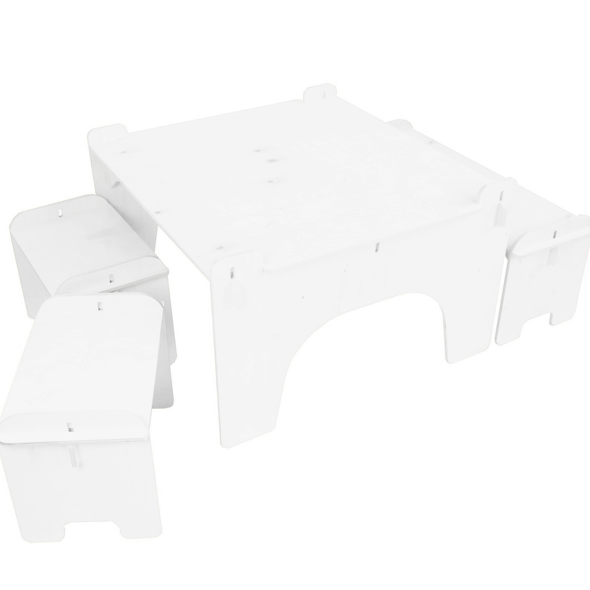 Mit Ausschnitten und Verbindungen, die jedes Teil an Ort und Stelle halten, schaffen wir robuste und langlebige Möbel für Kinder.
