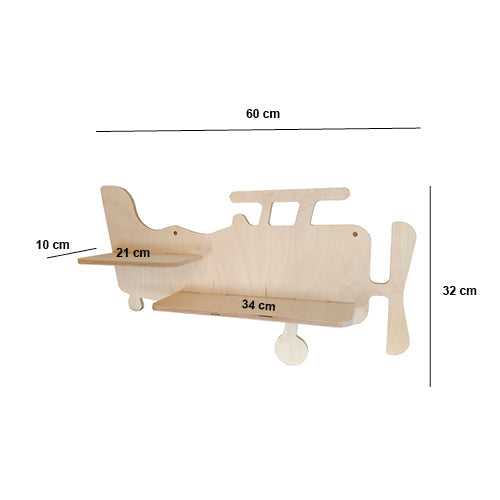 Das Wandregal Christian in Form eines Flugzeugs ist ein Muss für jedes kleine Kind, das davon träumt, Pilot zu werden.