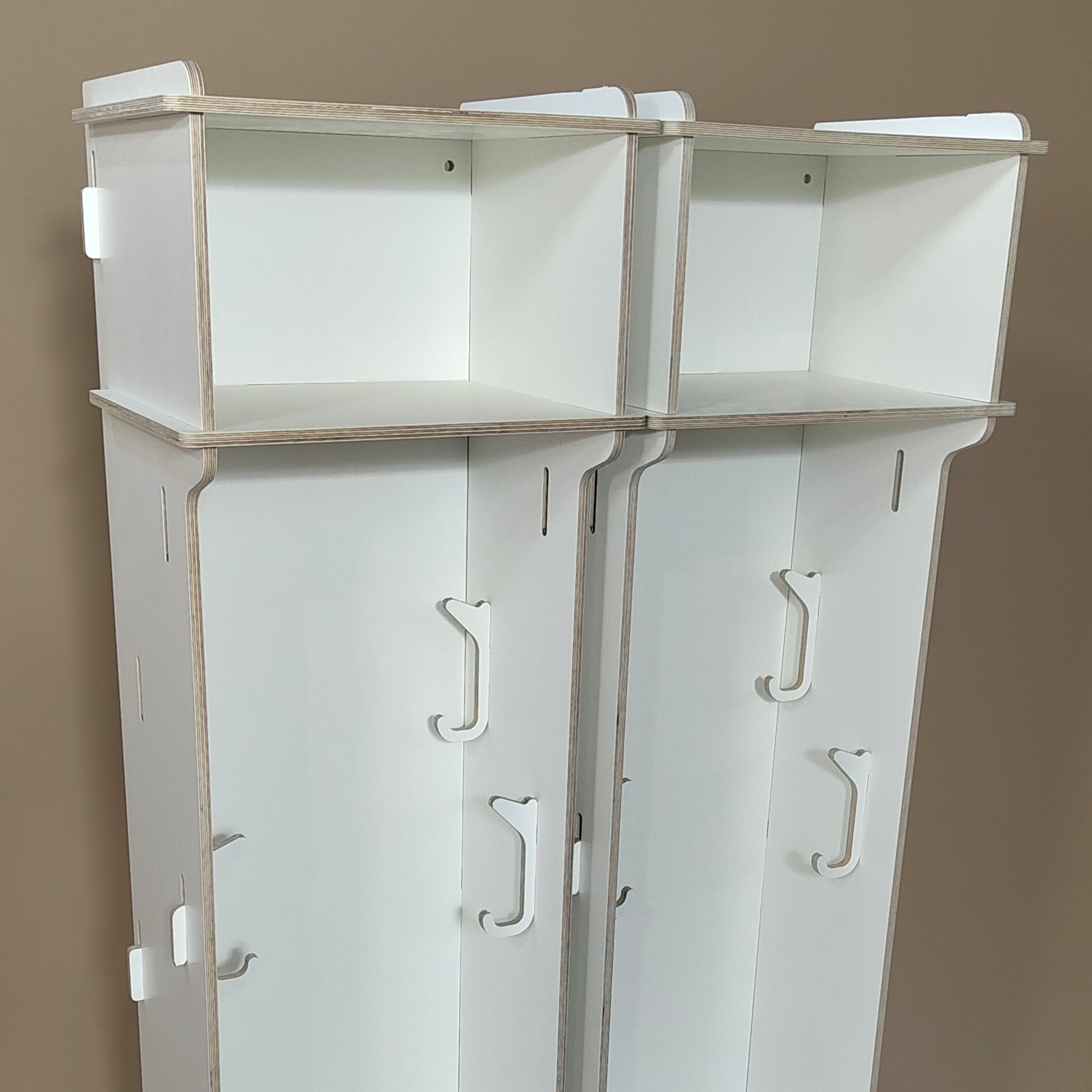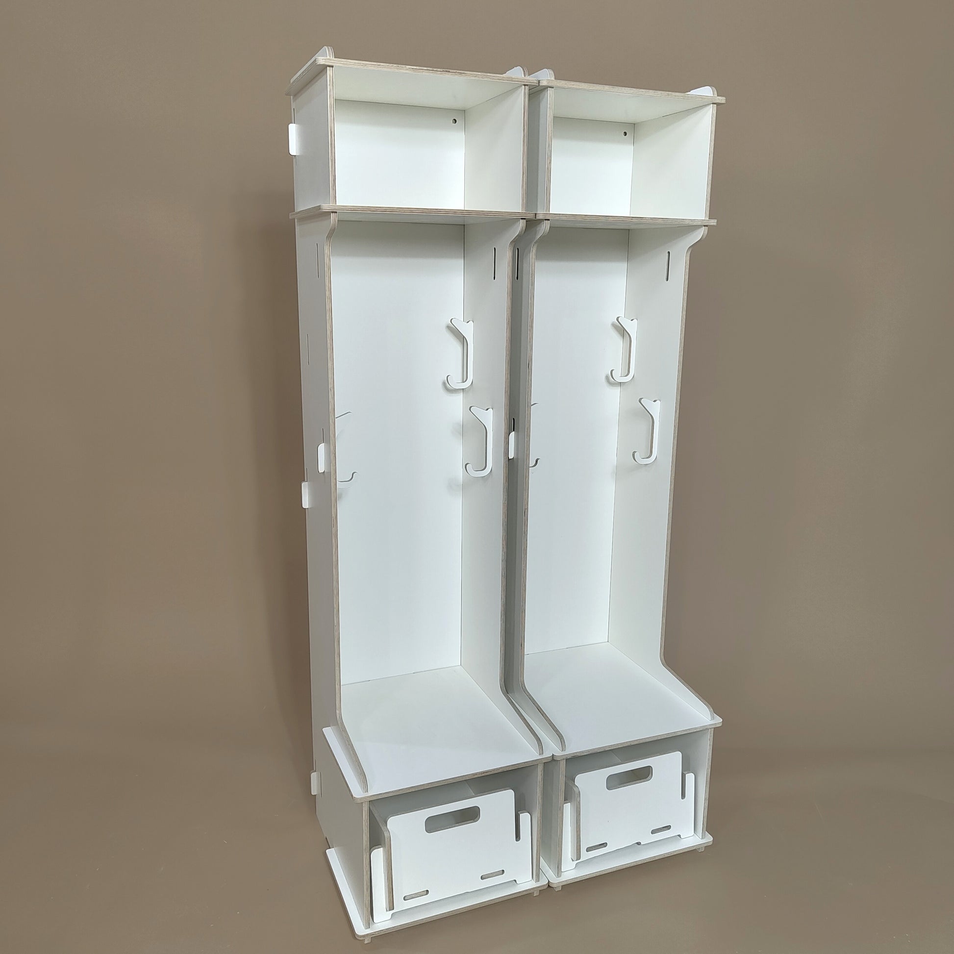 Jetzt haben Sie die Möglichkeit, unsere beliebten Garderobenmöbel „Bertram“ als komplettes Kombi-Set zu erhalten, das den Alltag einfacher und stilvoller macht. Dieses Set enthält 2 Stück. Kleiderschränke mit zusätzlichen Haken und 2 Stk. Aufbewahrungsboxen „Christina“, die perfekt auf die Unterseite von „Bertram“ passen. Perfekt für Familien mit mehreren Kindern, in denen jedes Kind seinen eigenen Kleiderschrank haben kann – oder für Eltern und Kinder, die sich eine eigene, individuelle Aufbewahrungslösung wünschen.