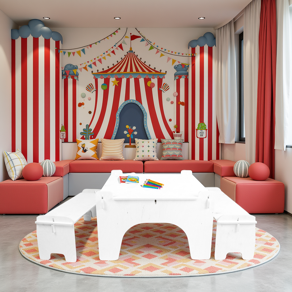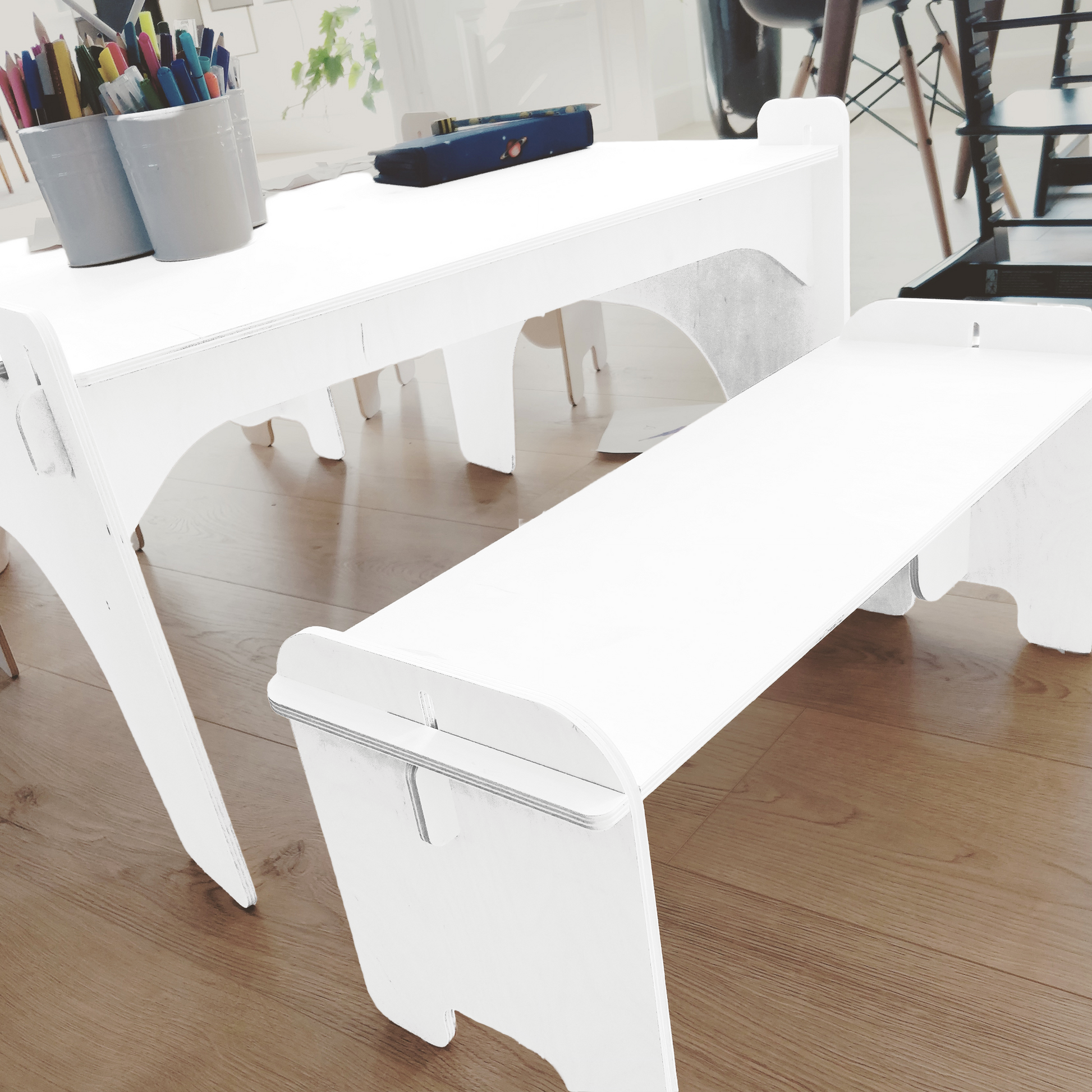Mit Ausschnitten und Verbindungen, die jedes Teil an Ort und Stelle halten, schaffen wir robuste und langlebige Möbel für Kinder.